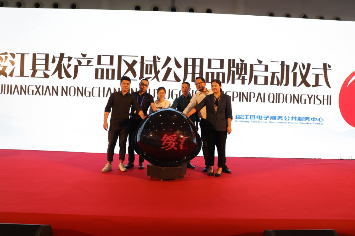 最后,在现场500余人以及网络直播全国观众的共同见证下,绥江县工业信息商务科技局副局长祝健凌、云南合火牛农业有限公司廖成凤、杭州天食科技有限公司若愚、武汉市农亨农业发展有限责任公司吴帅、宜昌誉福天下农牧科技开发有限公司徐毅、绥江电子商务公共服务中心周栋、武汉心宿吾乡品牌负责人宸宇,一同开启绥江县农产品区域公用品牌的全新时代!