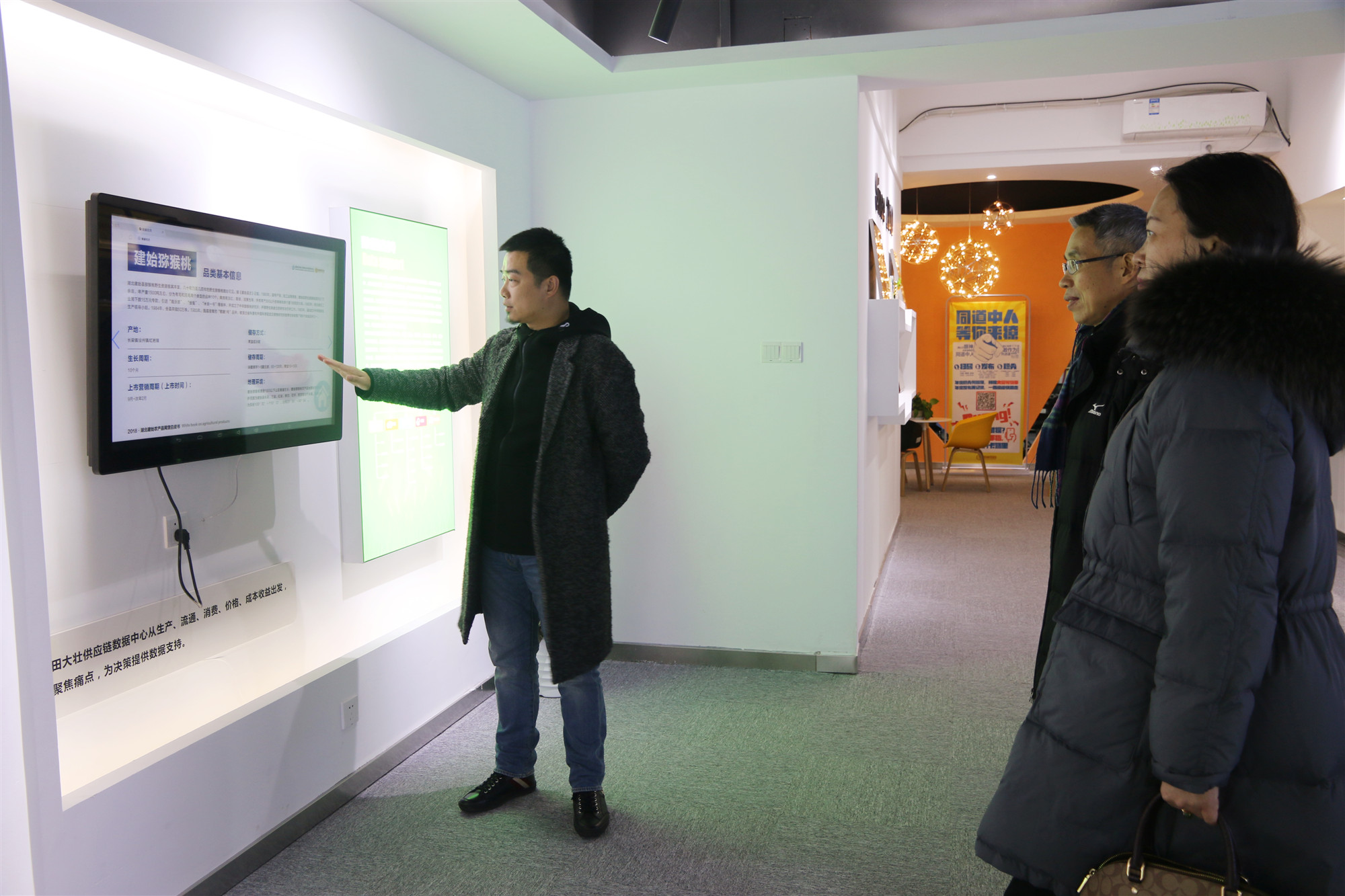 领导一行参观了蜂巢的各个办公区域及相关部门人员构成情况。随后,在蜂巢电商展厅里,莫夫先后对公司的发展、县域项目的布局、上行营销案例、蜂巢电商的体系与架构作了详细介绍。