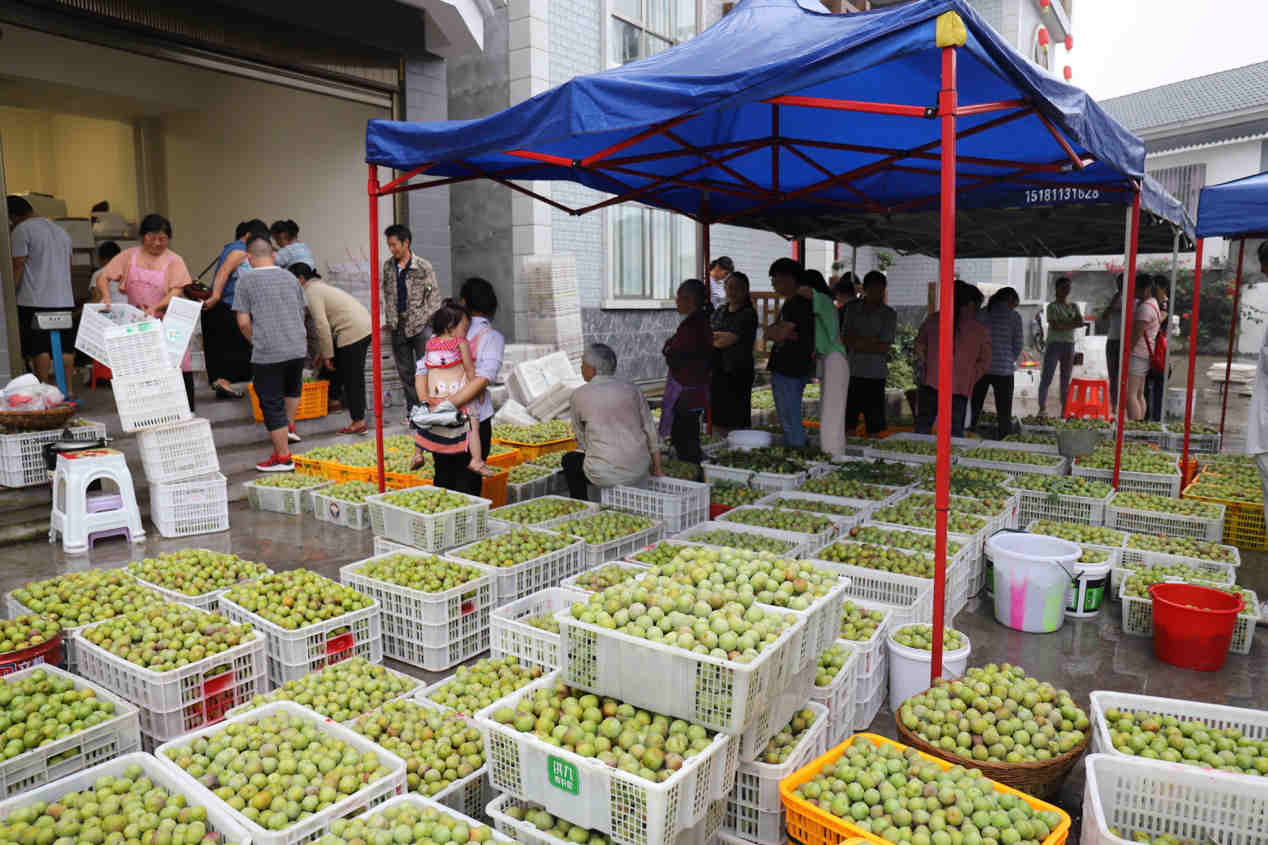李子交易市场上农户正在出售李子
